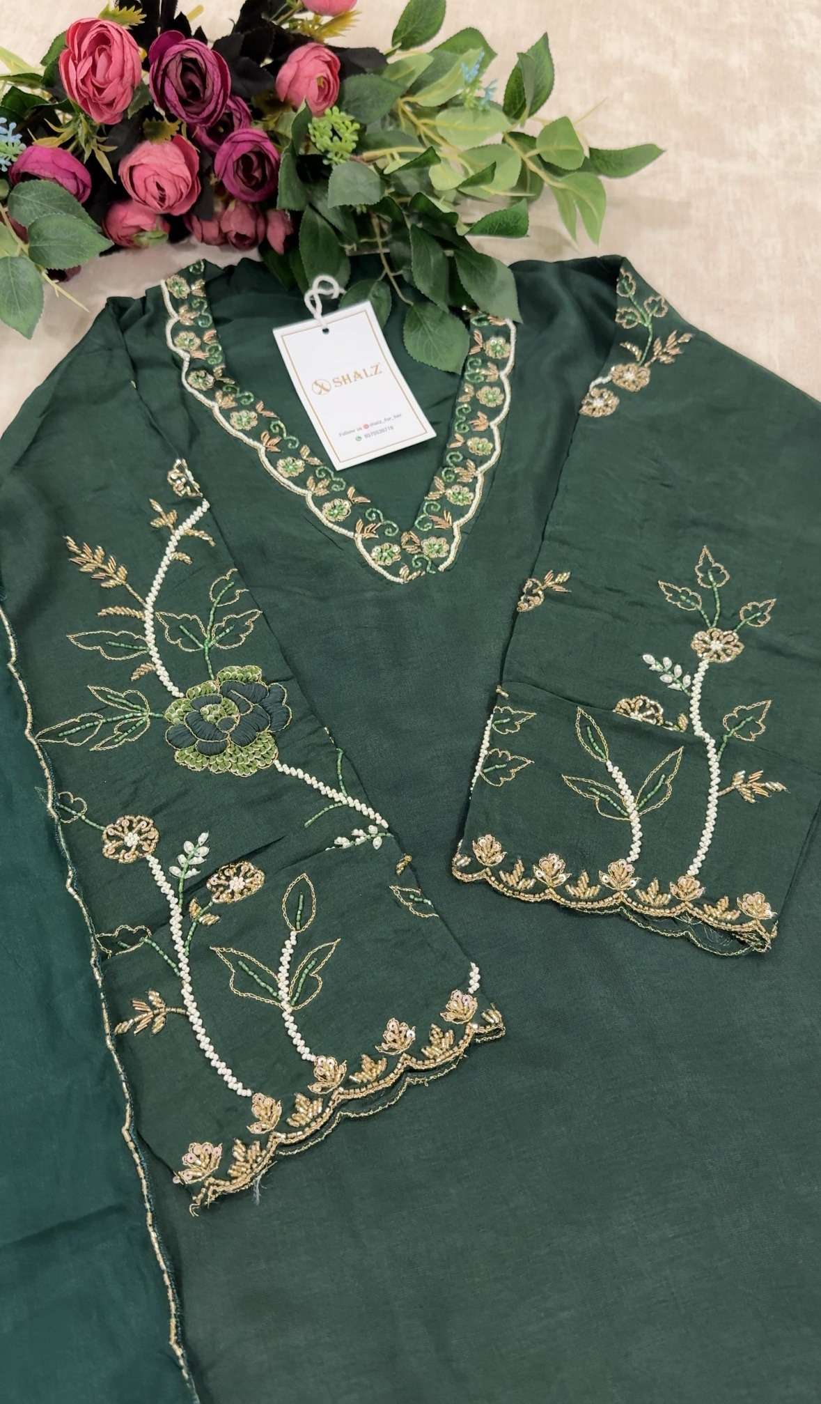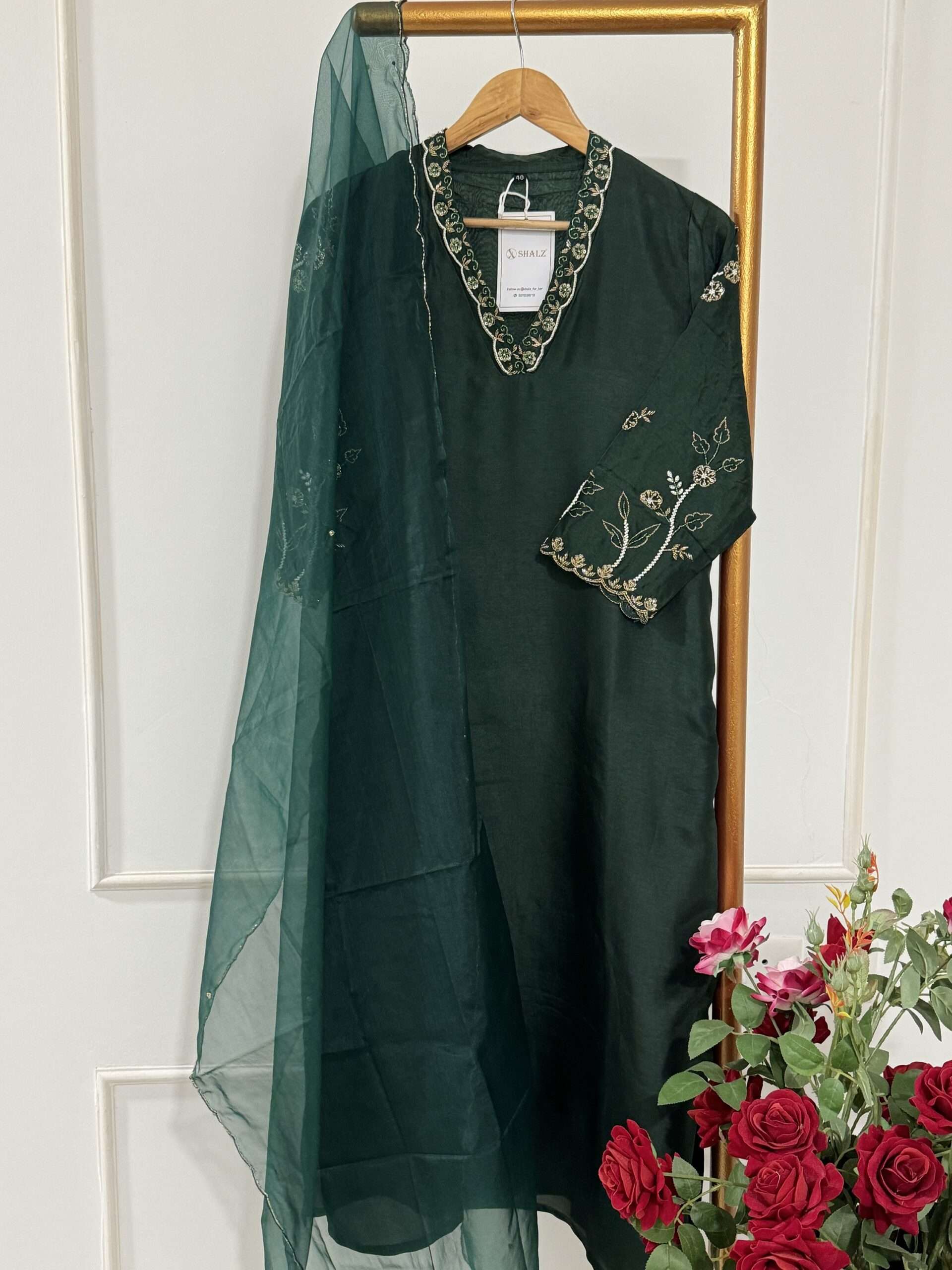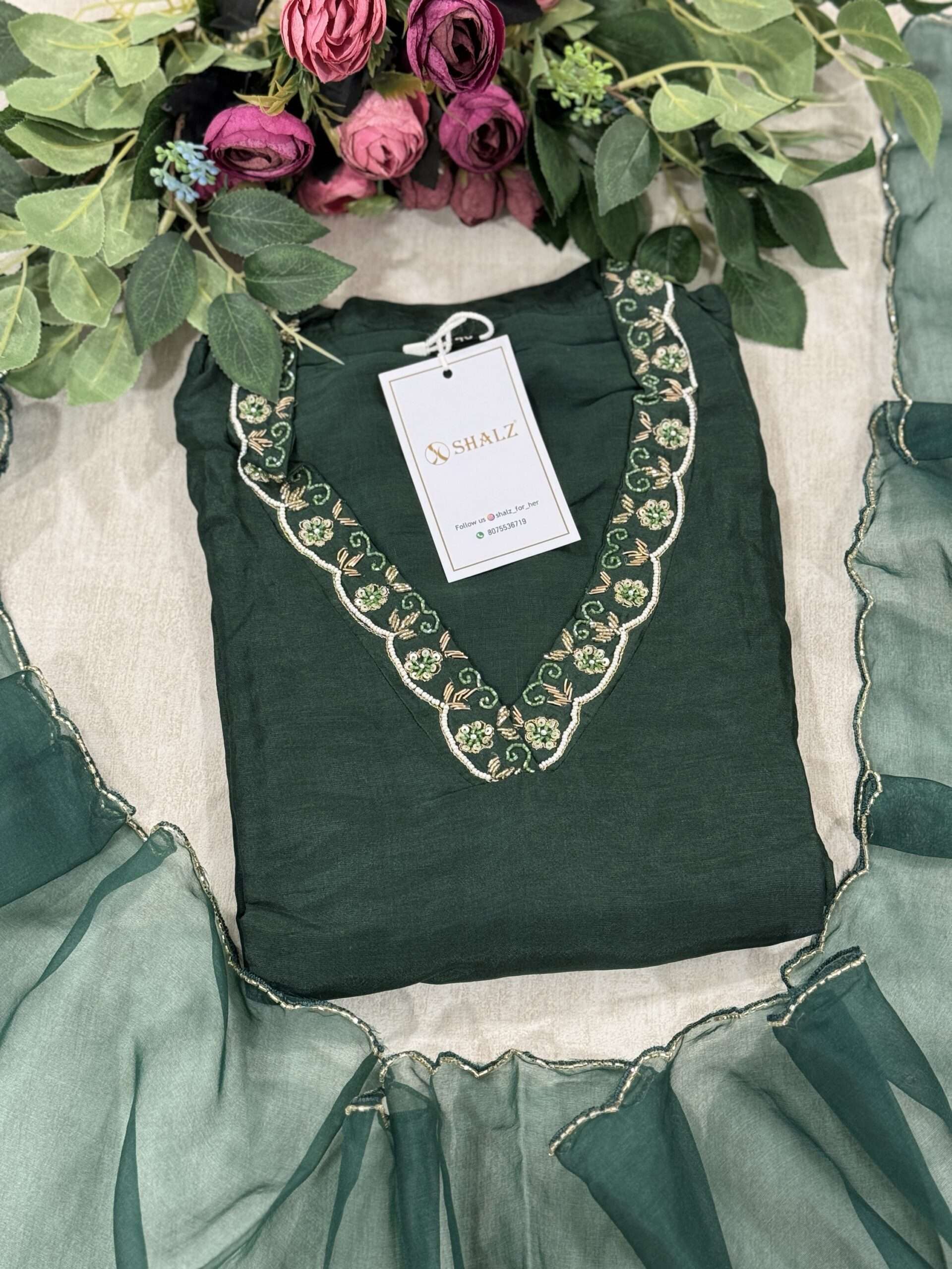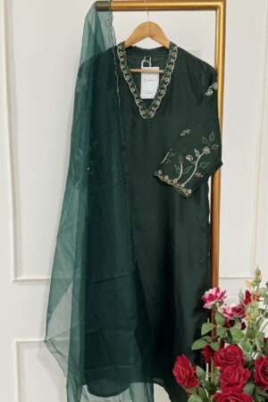 Dola silk salwar suit set paired with a soft organza Dupatta